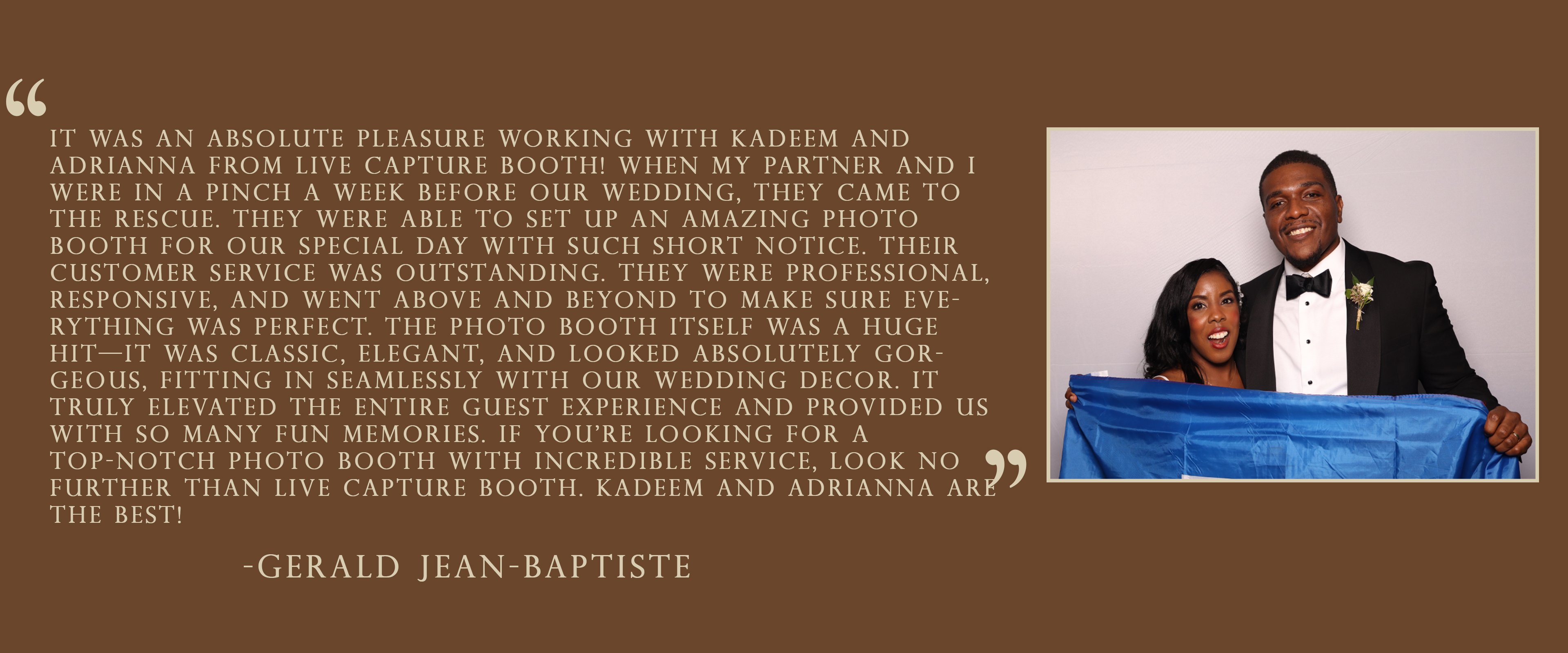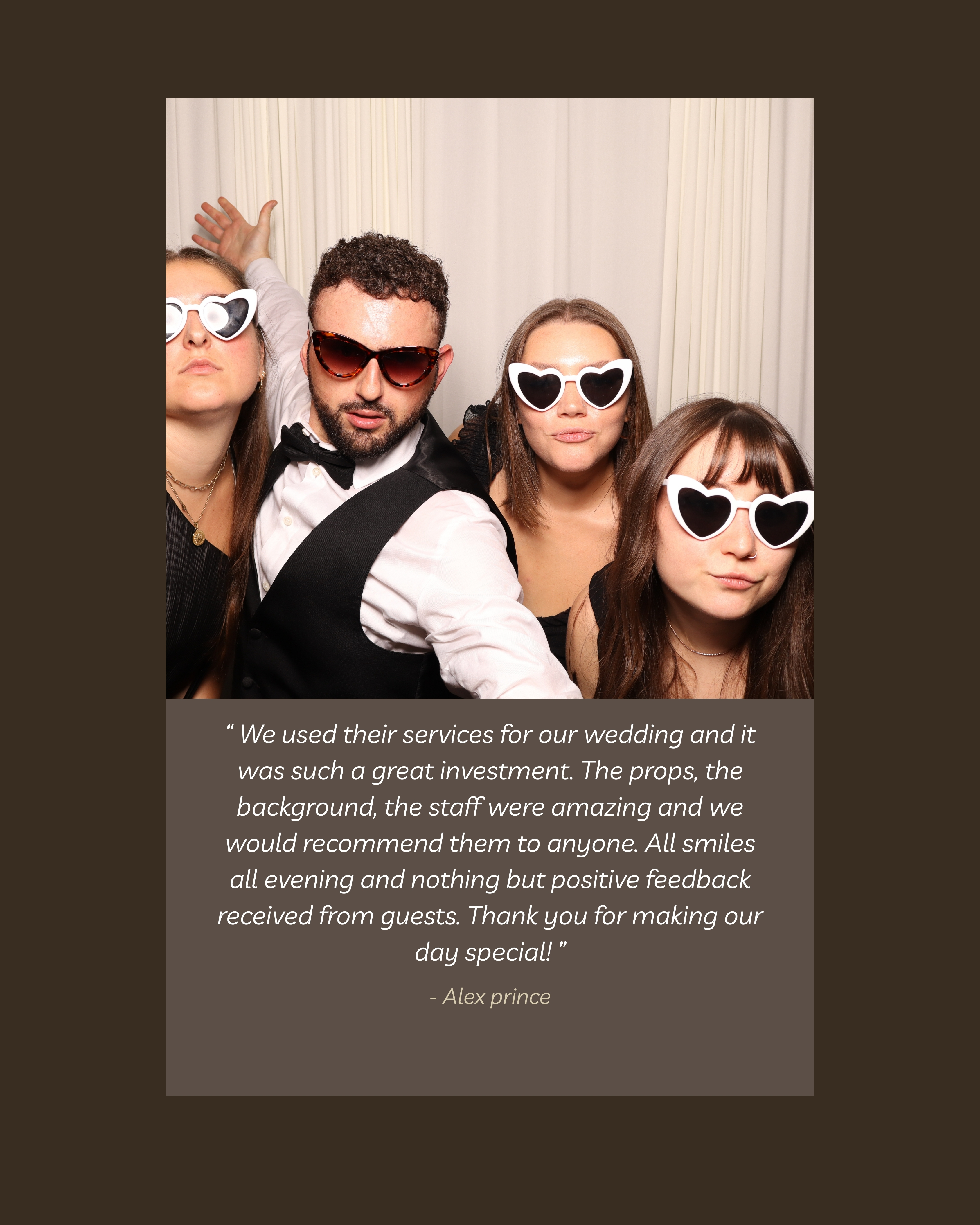 Make your wedding unforgettable. Our booth adds a timeless touch your guests will be talking about long after the night ends.